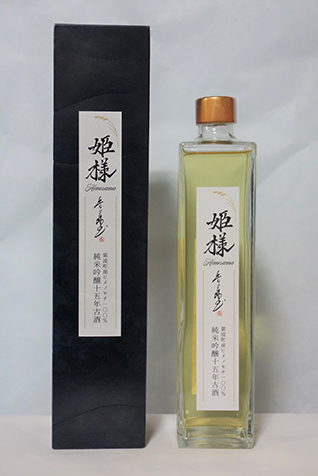 岩手県紫波町にある廣田酒造店の十五年熟成酒です。地元「ヒメノモチ」を55%精米して醸したお酒を、蔵の中で十五年間静かに寝かせました。日本酒度-8ですが、爽やかな甘さと、上品な酸味が口中で一体となり、飲み込んだ後の戻り香が心地よく余韻として残ります。この蔵の小野裕美杜氏とヒメノモチから「姫様」と命名しました。酒名は関西で活躍をされている若手女流書家繁本香菜先生に書いていただきました。