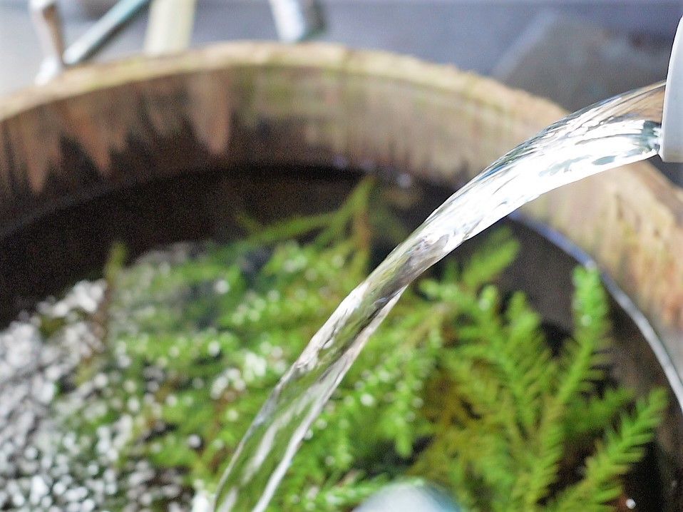仕込みに使う水は、蔵から約2キロ離れた丘陵部に湧く天然水です。江戸時代に水源を見つけて、自家水道を繋ぎ使用しています。今でも豊富な水量で、24時間絶え間なく流れ続けていて、飲み水、酒造りに利用しています。水質は、まろやかで素直な軟水です。