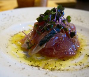 一方こってり系の鮪のトロや鯖の塩焼きなどには醤油そのものが持っている乳酸、アミノ酸がこってりした魚の成分と同じなので、醤油だけで充分な相乗効果があります。日本酒もアミノ酸が多い純米酒や乳酸が豊富な生酛系のぬる燗が相性抜群です。