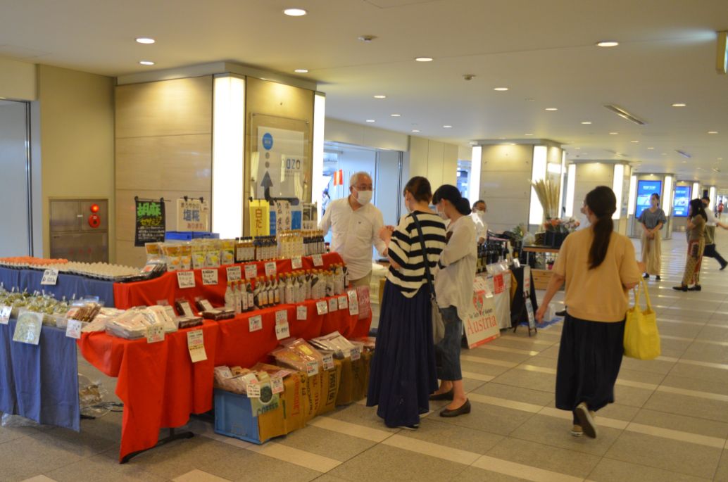 東京駅から直結している丸の内駅前地下広場(新丸ビル地下入り口付近)で毎週金曜日に安心でおいしい季節の食材や食品を生産者が直接販売しています。各地の“郷土の食材”を、都会のど真ん中で気軽に購入できる市場(いちば)があればとの思いから、安心でおいしい季節の食材や食品を生産者が直接販売いたします。