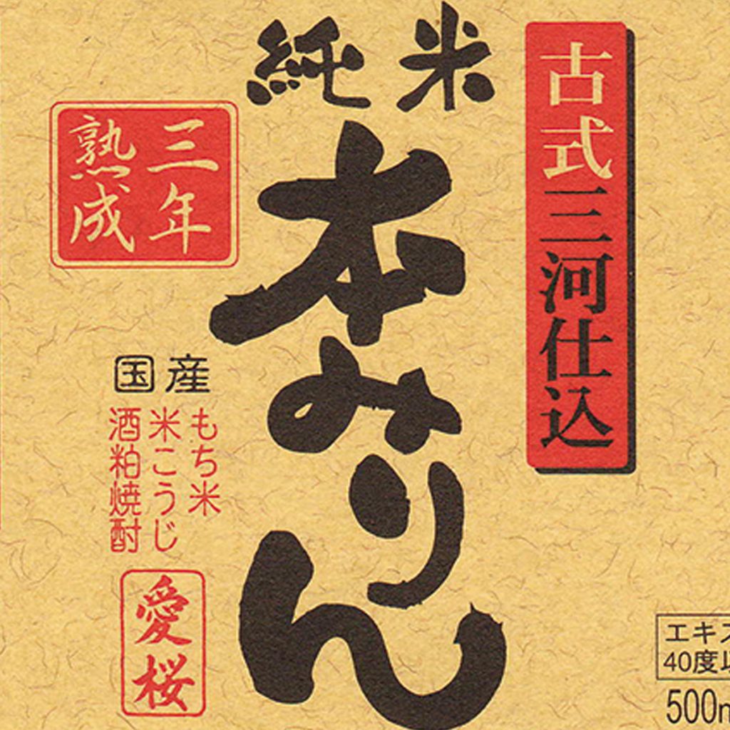 愛知県産のもち米、あいちのかおりで造る米麹と本格焼酎だけで仕上げ、もろみ、貯蔵を長期熟成させた三河熟成みりん(1年熟成、3年熟成があります)。